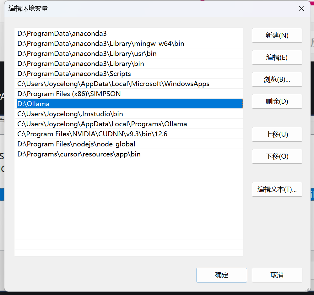 将你的ollama的路径加进去,以D:\Ollama为例