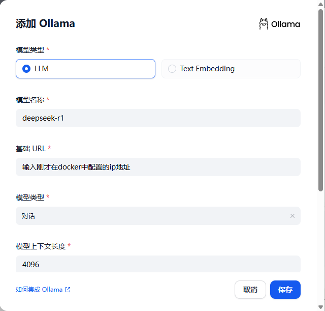 配置好之后,就可以在Dify刚才安装好的Ollama处选择本地部署好的模型进行接入: