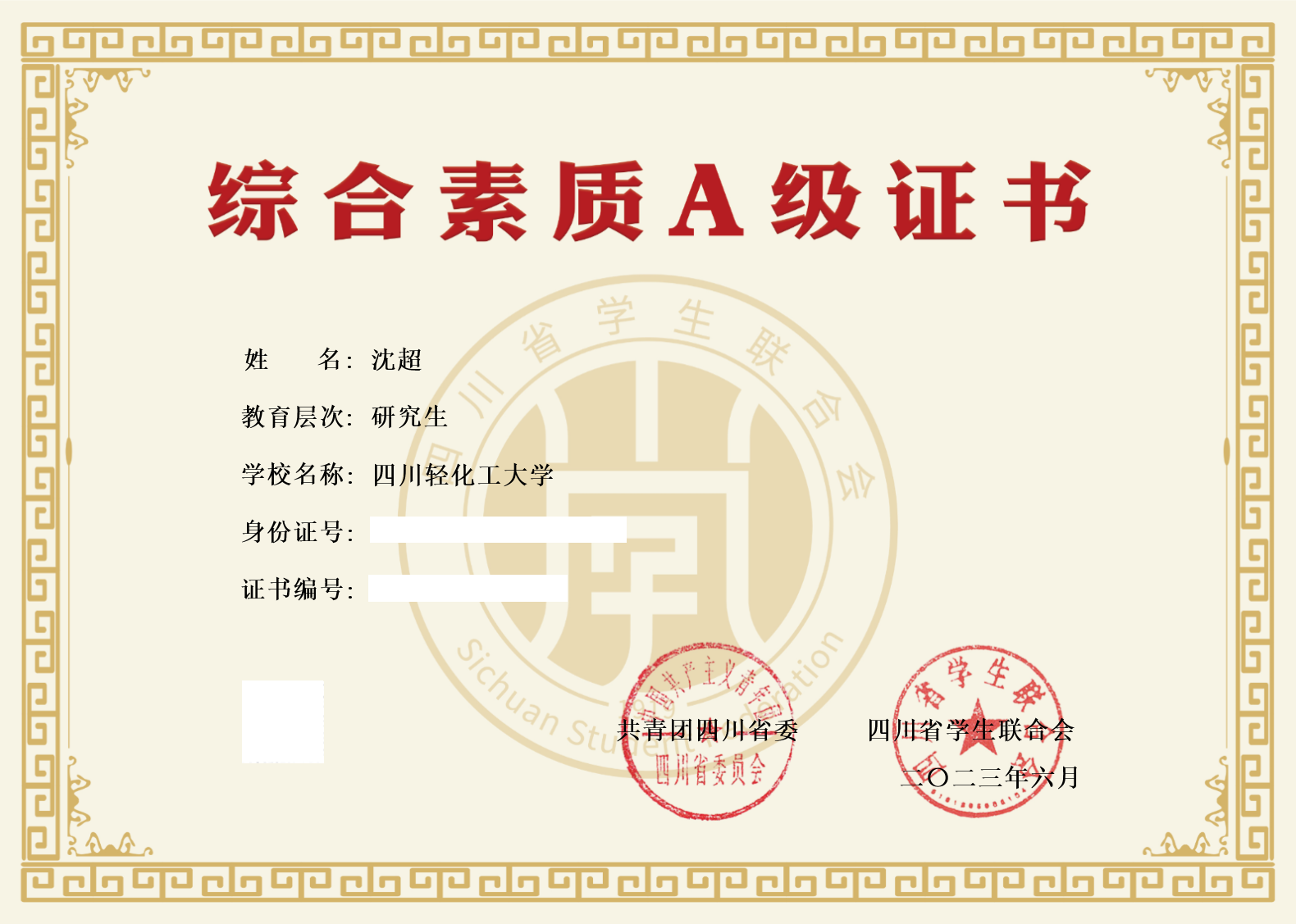 近日,共青团四川省委、四川省学生联合会公布了2023年夏季学期四川省大学生“综合素质A级证书”通过名单,经学生自主申报、校团委审核、团省委和省学联复审,我校共有118名学生获此殊荣,居历年夏季学期最高。