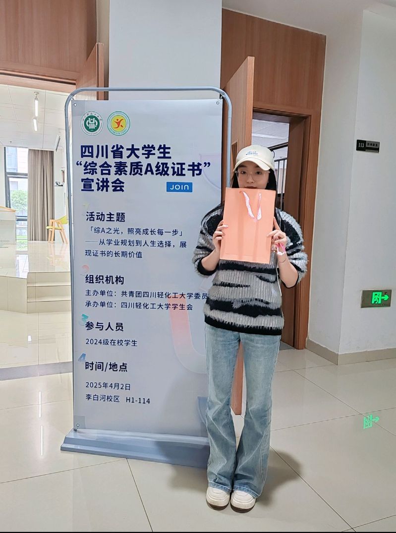 为深入贯彻落实立德树人根本任务,助力学生全面成长成才,4月2日下午14:30,校团委于李白河校区博学楼114教室成功举办四川省大学生综合素质A级证书专题宣讲会。活动旨在系统解读认证政策,引导学生明确发展目标,吸引了200余名2024级学生踊跃参与,现场气氛热烈。