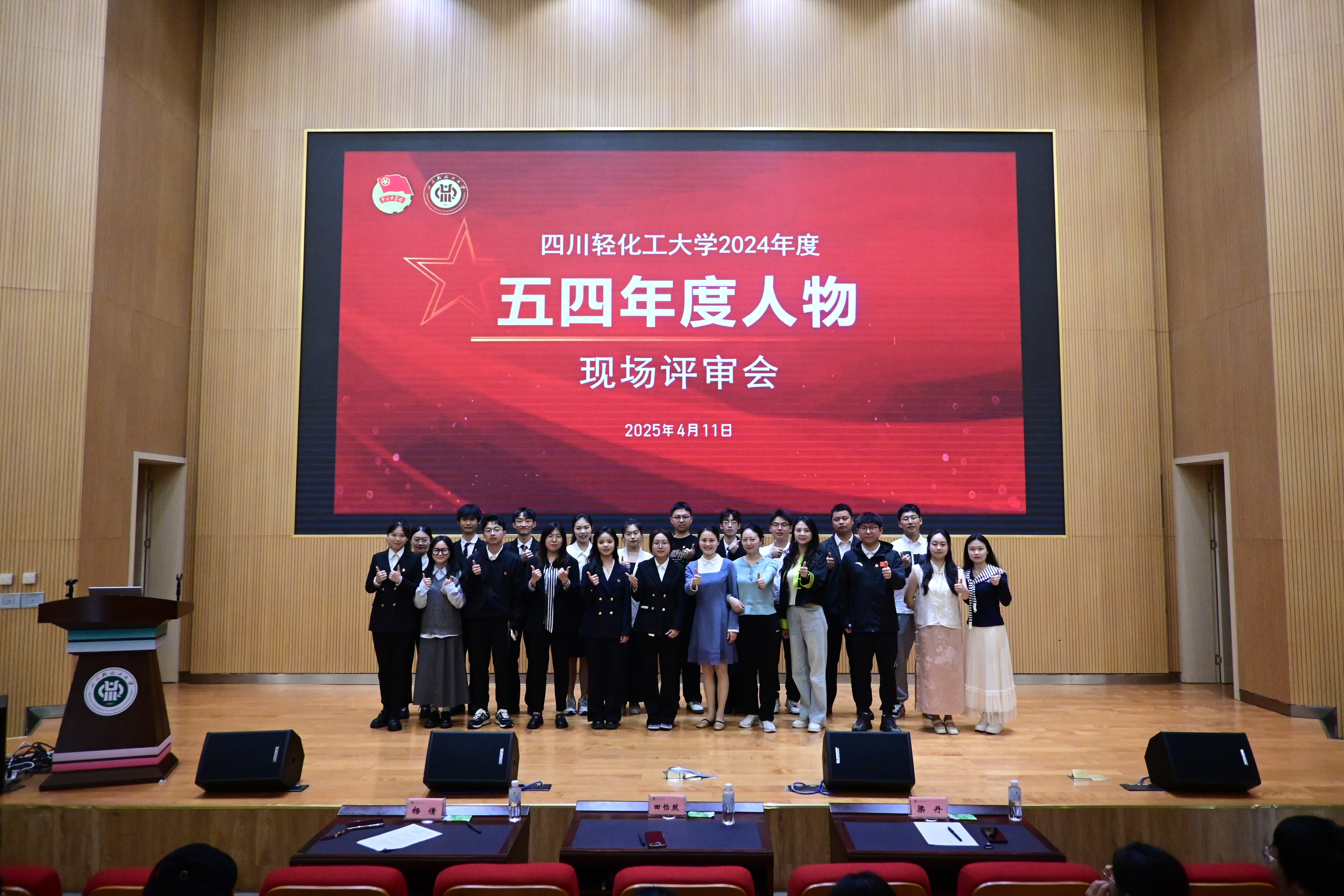 4月11日下午,校团委在李白河校区尚艺馆学术报告厅104举行四川轻化工大学2024年度“五四年度人物”现场评审会,选拔在团学工作、创新创业、自立自强、文体活动等领域表现优异、具有典型示范引领作用的先进个人。专家评委、大众评审团及学生代表近200人参与活动。