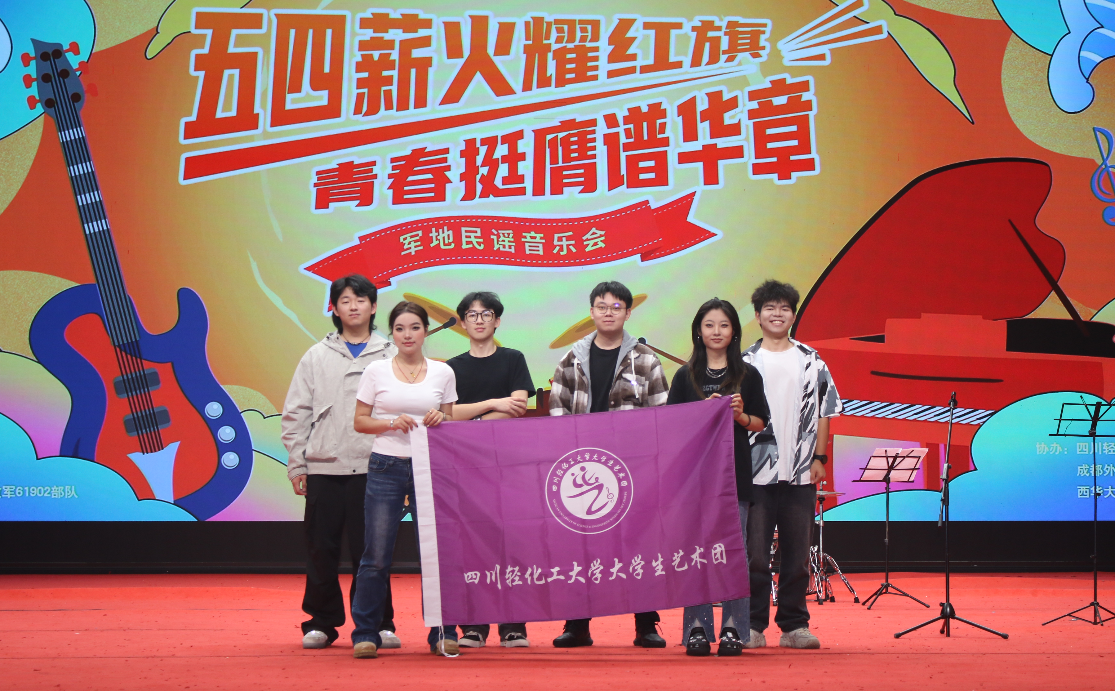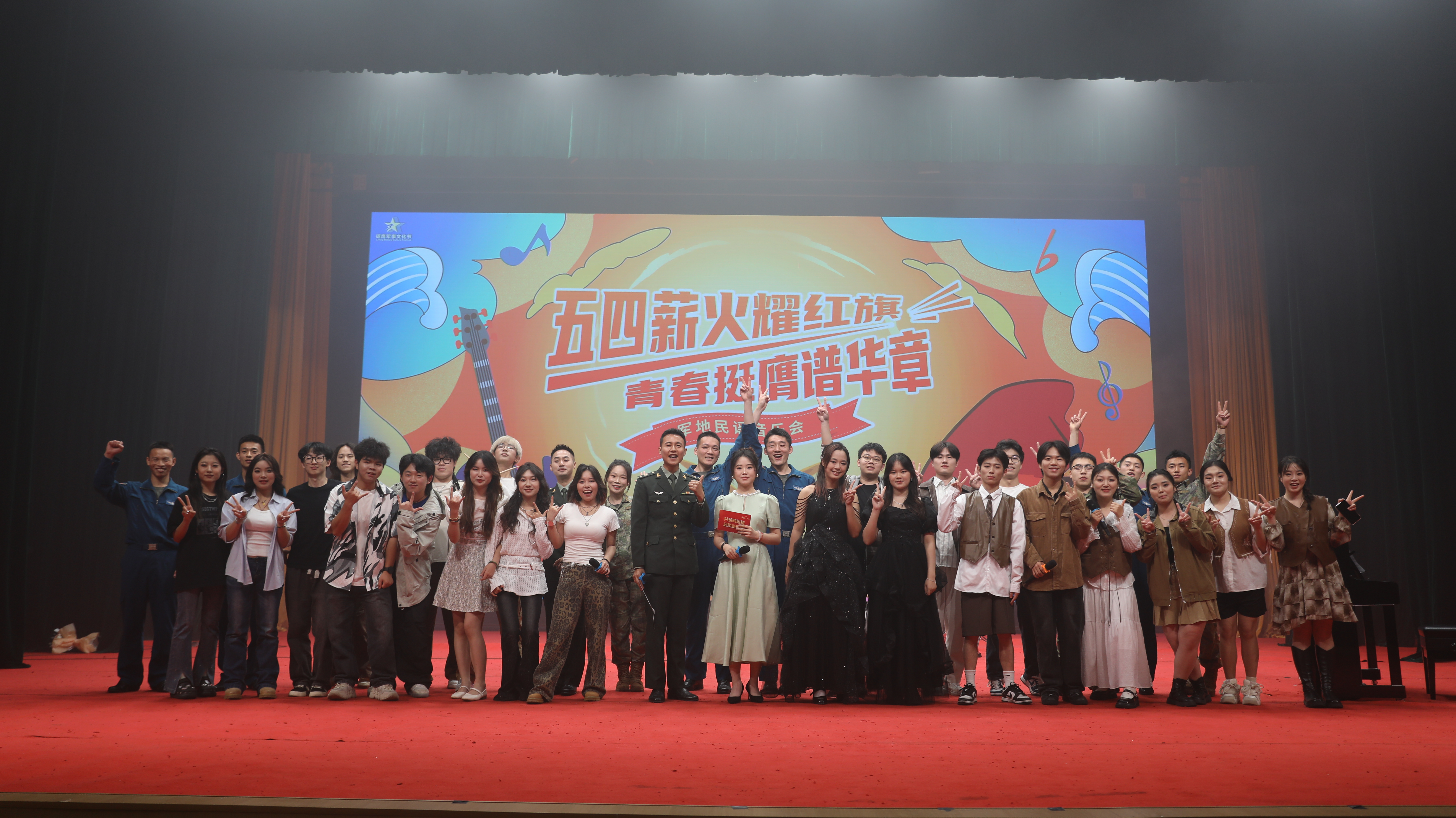 为庆祝五四青年节106周年,大学生艺术团受邀参加中国人民解放军61902部队主办的“五四薪火耀红旗、青春挺膺谱华章”军地音乐会,本次演出有7名校大学生艺术团成员参与,校团委李晓兰老师带队。