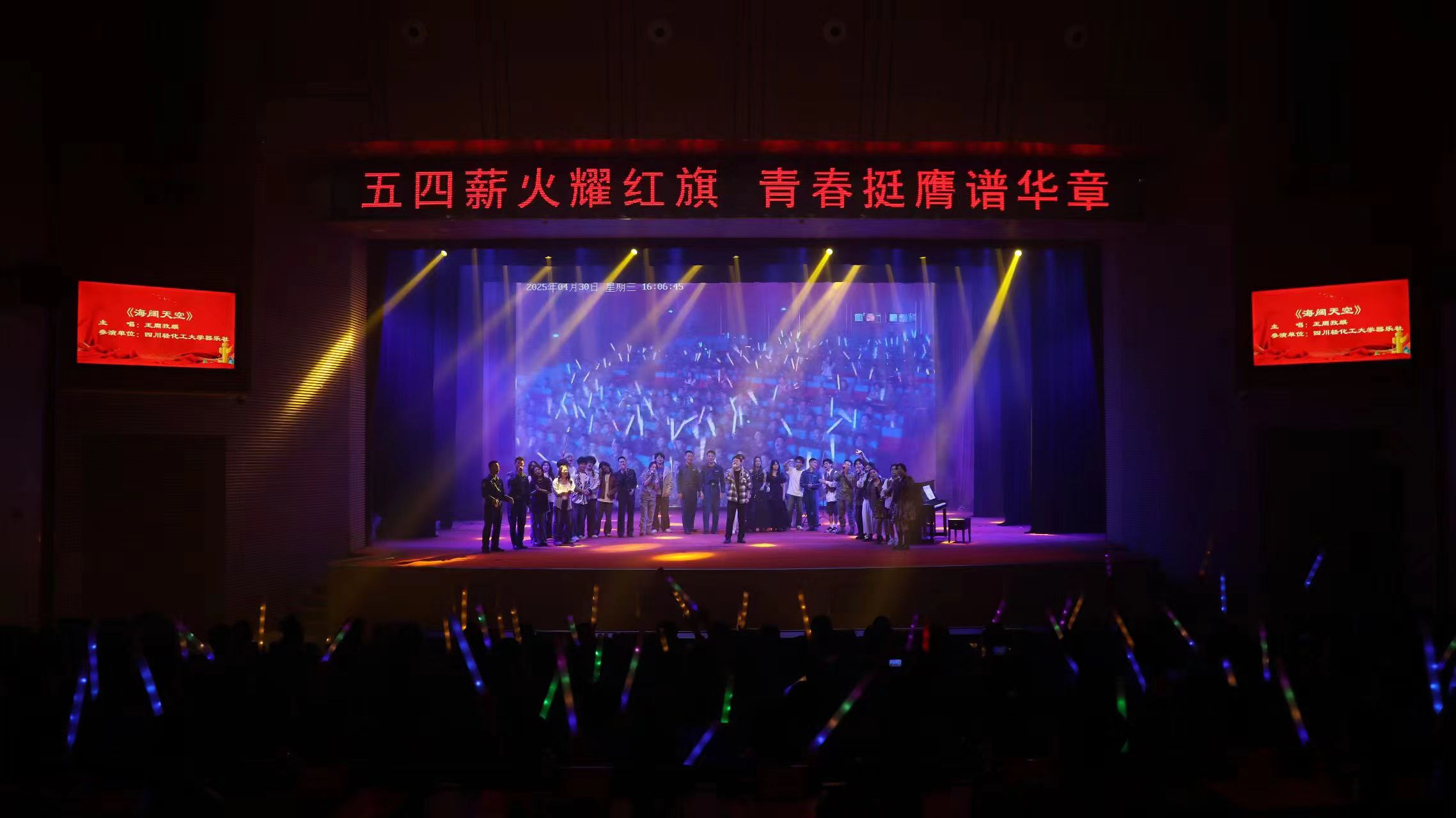 军地音乐会由部队“砺鹰”乐队带来的一首《直到世界尽头》拉开帷幕,浑厚的嗓音展示着热血男儿的气概和对梦想的执着。我校大学生艺术团成员演绎的《下一个天亮》《找自己》和《海阔天空》,唱出了大学生的朝气蓬勃和青春的美好模样,充分展现了成员们的专业能力和艺术素养。此外,成都外国语学院宜宾校区和西华大学的学生也带来了精彩演出。大学生与部队官兵们用青春旋律唱响绿色军营,用美育实践共筑思政课堂。