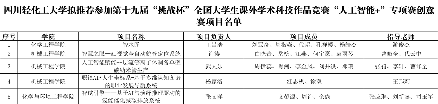四川轻化工大学拟推荐参加第十九届“挑战杯”全国大学生课外学术科技作品竞赛