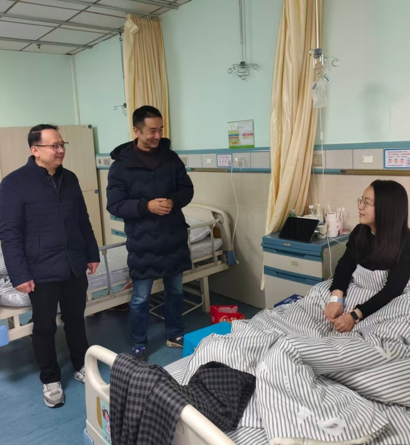 为落实教育部高校学生司关于开展2026届高校毕业生“寒假促就业暖心行动”的通知要求,外语学院积极开展就业帮扶,为重点群体学生送去温暖与支持。1月23日下午,学院党委书记郁毅、学工办主任谭贤军、毕业班辅导员唐廷君前往医院,探望因病住院的2026届英语专业本科毕业生聂同学,传递学校温暖,助力就业起航。