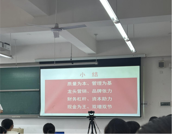 李家奎先生的报告主要分为五个部分,分别是资产、负债、权益、财务监督和财务分析。他指出企业在对资产进行管理的时候应该多注意公司投资回报率、以销定产、应收预付客户授信、发出商品回款考核、投资审批、抵押审批、子公司采购监标等方面。针对企业负债李家奎先生指出,企业一般会将资产负债率控制在红线范围内,否则会导致企业融资困难。另外他还指出,财务杠杆对于企业债务融资而言有成本低的优势,但是企业运用财务杠杆的前提是回报率高于成本。通过向同学们阐述华夏玻璃的案例,李家奎先生强调加强权益的企业治理是建立在公平、透明、有效的企业的治理机制上,以维护各方权益和实现企业可持续发展。