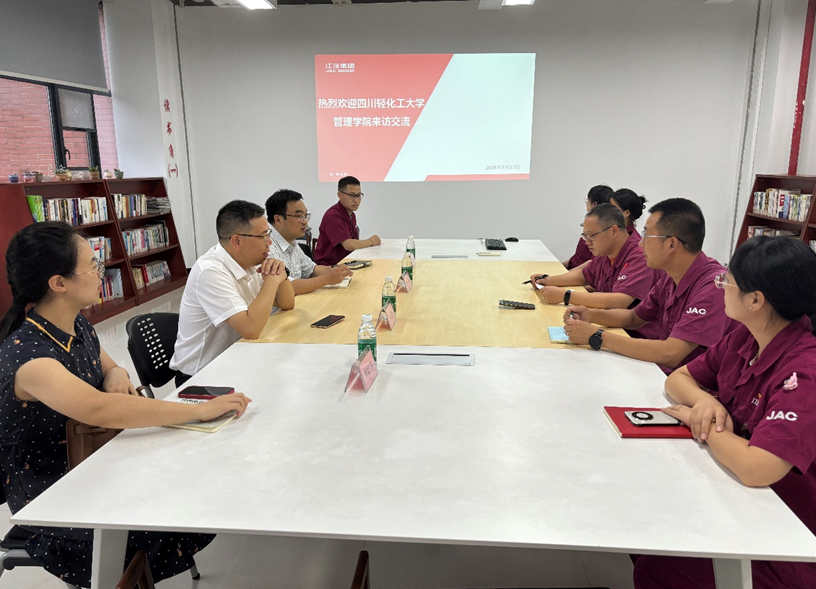 7月17日,访企拓岗活动的首站,韦崇岗书记一行来到了遂宁市四川江淮汽车有限公司,受到了公司人事部部长、校友陈波、工艺技术部部长、校友唐松热情接待。陈波部长详细介绍了企业的发展历程、经营状况及人才需求。双方就企业发展、人才的培养与输送等进行了深入交流。双方一致认为新能源汽车的发展前景广阔,并表示将进一步加强沟通,促进人才培养与输出。周纪容关心管理学院今年被录用的三名毕业生,询问其入职后是否适应,鼓励他们要保持积极的心态、勤奋的工作态度和不断学习的精神,在工作上获得成功。
