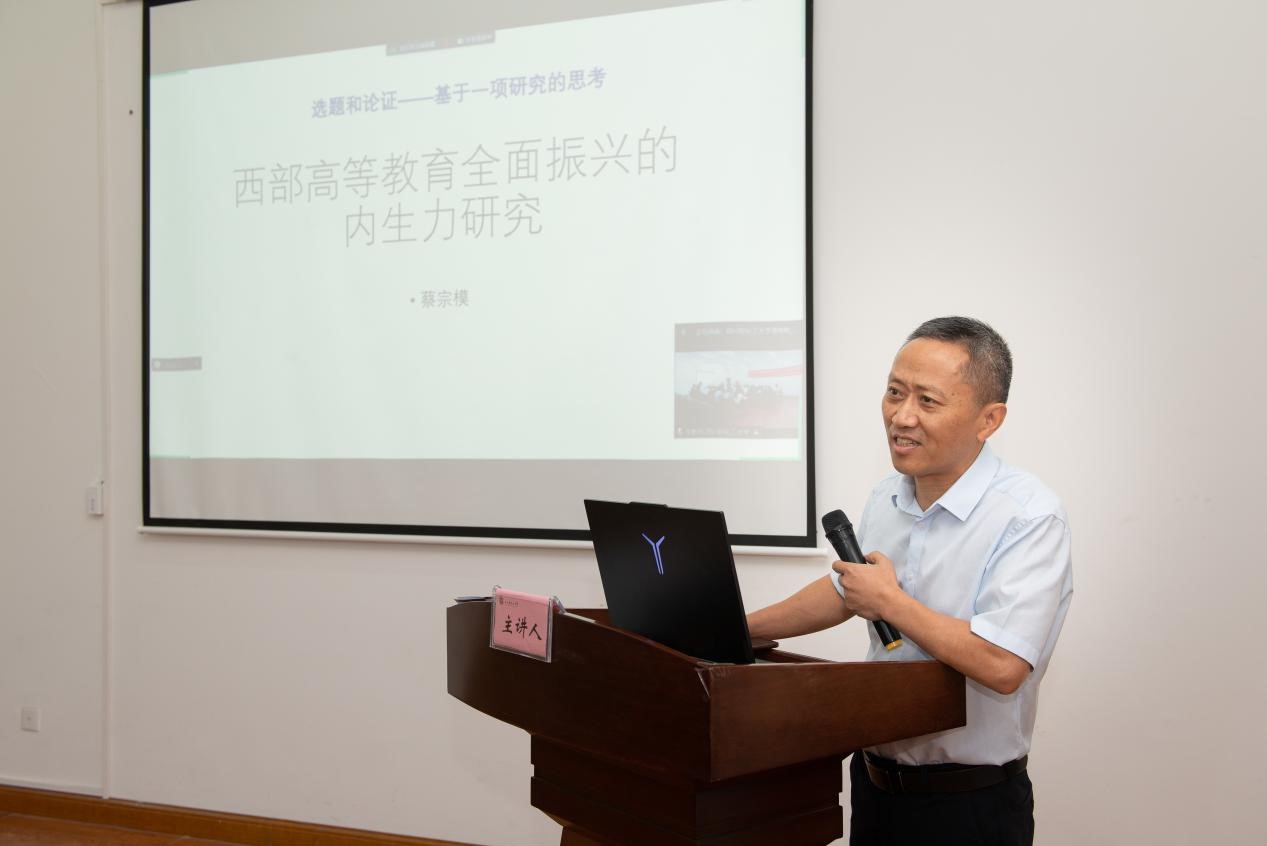 主题报告环节,蔡宗模教授作了“西部高等教育全面振兴的内生力研究”主题分享。他以编辑的视角,全面阐述了高质量学术研究的“三重境界”,即从新颖的观点到严谨的论证、再到反思与总结。蔡宗模指出,研究生应着眼于问题的三个层次:从最初的无问题意识,到逐渐明确并突出问题,最终选择重大研究价值和社会意义的课题。同时,他还详细阐述了问题打开的路径以及问题解决的方法。蔡宗模鼓励研究生们要积极投身于学术研究,不断探索与创新,为西部高等教育的全面振兴贡献青春才智。