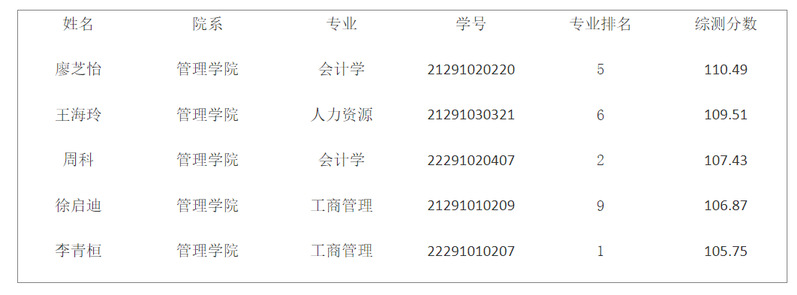 管理学院2022-2023学年国家奖学金获奖学生初审名单表
