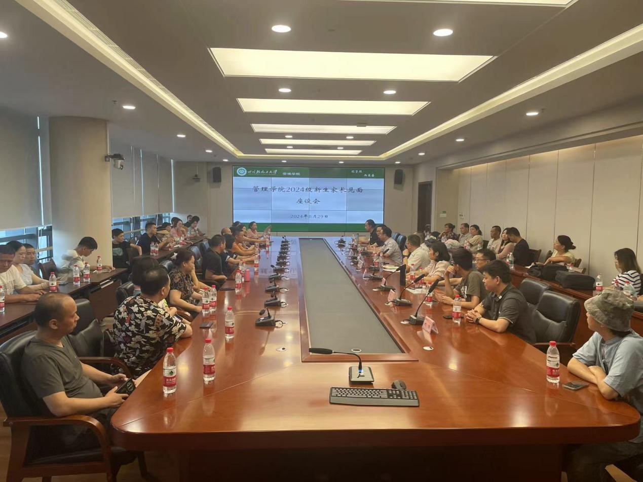 为了迎接2024级新生的到来,加强家校联系,共同探讨学生成长成才之路,8月29日下午,管理学院在李白河校区行政中心901会议室召开了2024级新生及家长见面会。管理学院院长黄英杰、党委副书记(临时负责人)韦崇岗、副院长熊山、余元春,党委副书记、纪委书记李科和相关科室负责人出席会议。会议由韦崇岗主持。