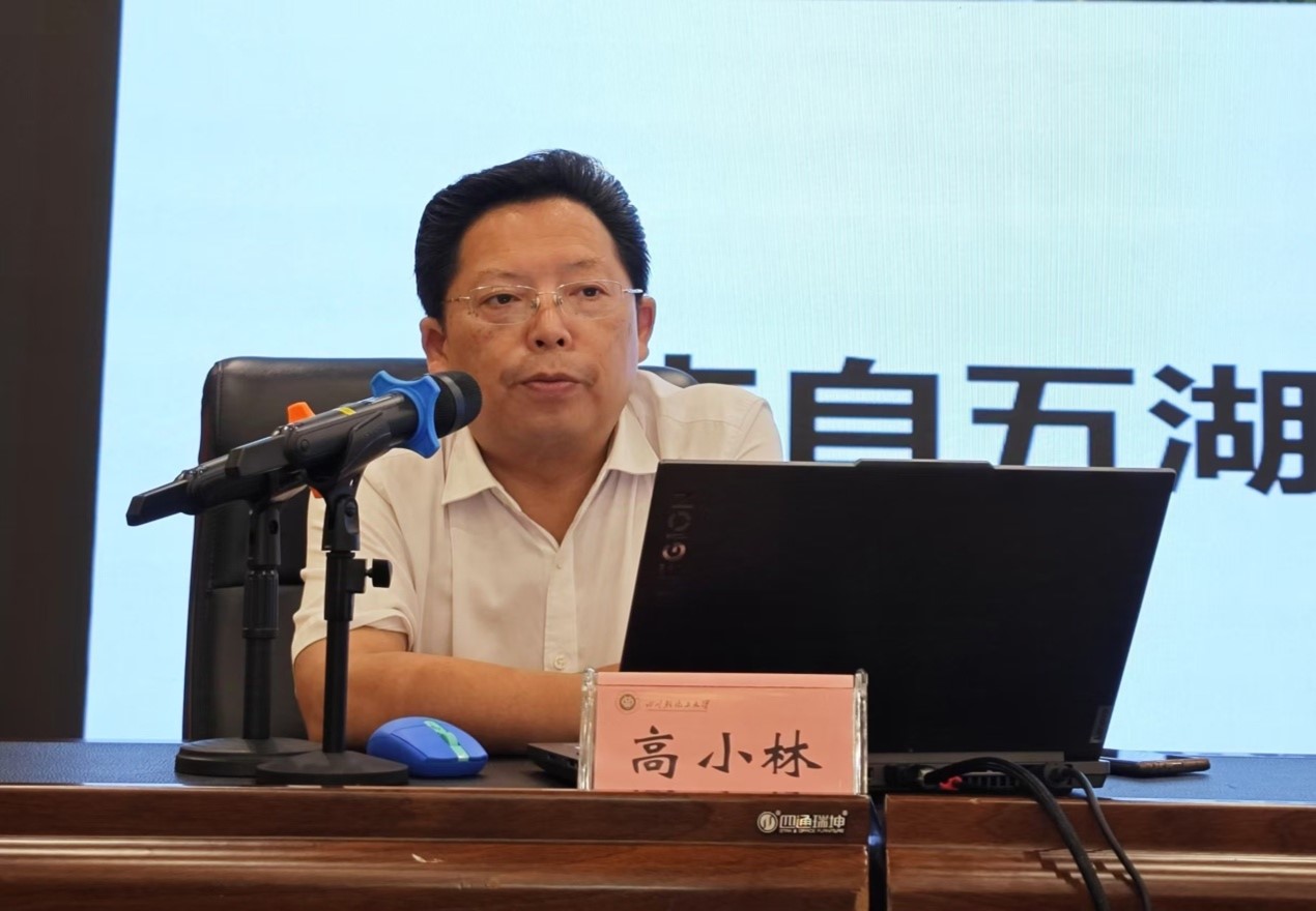 高小林首先对同学们来到四川轻化工大学表示欢迎,随后向同学们介绍了校情校史和自贡文化,接着,他从个人、学校与家国三个维度出发,教导同学们要健康阳光、自信自强、个性鲜明,叮嘱大家珍惜在校时光,在生活和学习中勤奋努力、学思笃行。他指出,四川轻化工大学不仅是一所值得拥有的大学,也是一所以学生为中心,坚持公平正义,学风浓厚、互助友爱、充满活力的大学。