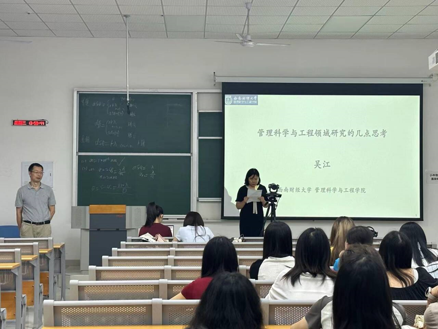 为进一步提高管理学院研究生科学研究能力,9月25日下午,西南财经大学管理科学与工程学院吴江教授应邀为学生作了题为管理科学与工程领域的几点思考的学术讲座,讲座由管理学院副院长余元春主持,管理学院管理科学与工程专业全体研究生聆听了讲座。