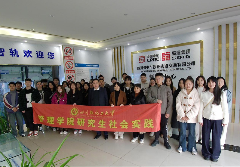 随后研究生们参观了四川省中车铁投轨道交通有限公司(以下简称为中车铁投)。在展厅里,研究生们详细了解了中车铁投的发展历程、主要业务,主要的工艺过程以及未来的发展战略。在生产车间,研究生们亲眼见证了轨道交通装备的制造流程。从原材料的切割、焊接到部件的组装、调试,每一个环节都充满了高科技和智能化的气息。并交流学习了企业产品成本核算与控制区别于传统制造企业的不同,研发支出管理与企业风险管控方面的措施等。