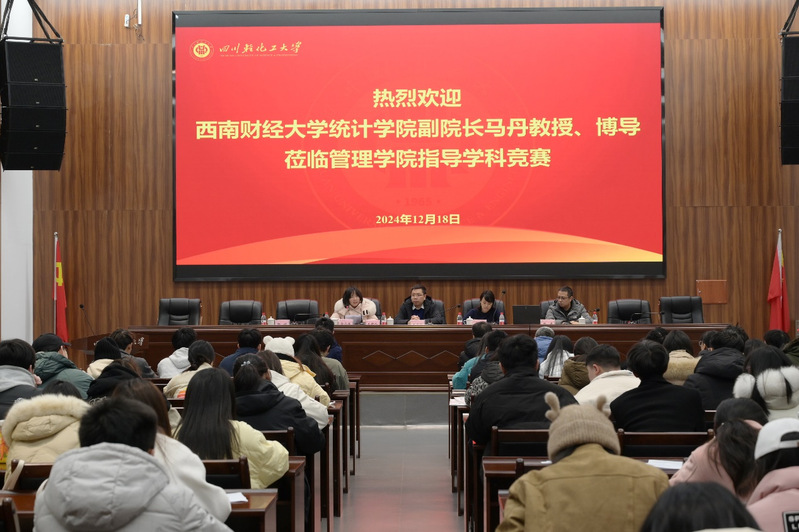 2024年12月18日,四川轻化工大学管理学院召开“正大杯”第十五届全国大学生市场调查与分析大赛启动仪式,并邀请到西南财经大学统计学院副院长马丹教授,为参会师生做市场调查分析方面的讲座。管理学院党委副书记韦崇岗(主持工作)、副院长余元春、学术办主任杨波、学科与研究生办公室主任张勇、工程管理系主任付宇、数统学院统计系副主任蔺富明及部分参赛指导教师出席启动仪式和讲座,管理学院、数统学院参赛本科生、研究生参加了启动仪式和讲座,启动仪式暨讲座由管理学院副院长余元春主持。