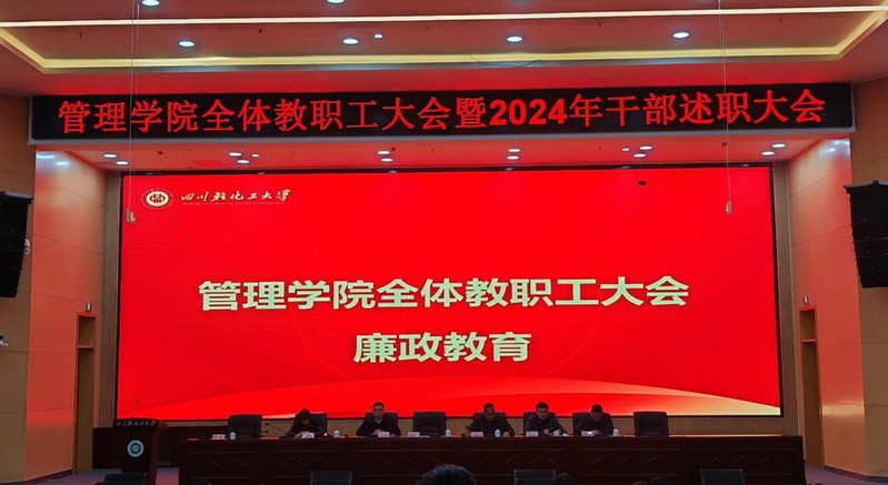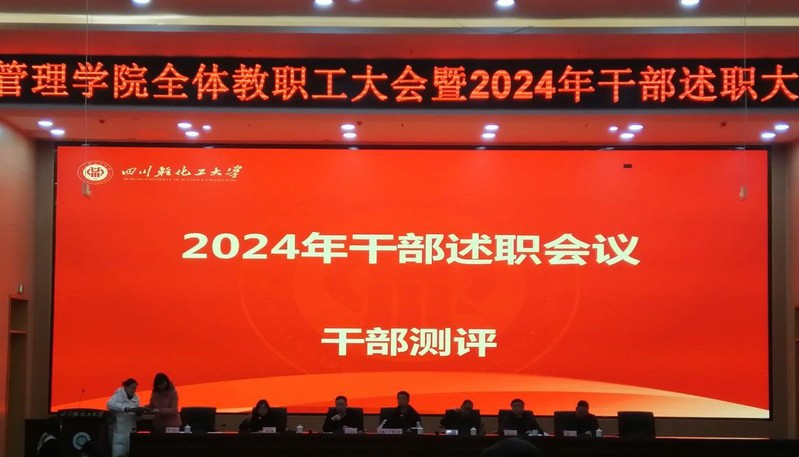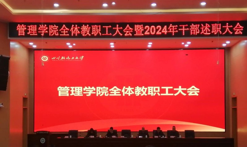 2025年1月6日下午,管理学院于宜宾校区A3-108召开会教职工大会暨2024年干部述职会议,学院全体教职工参会。