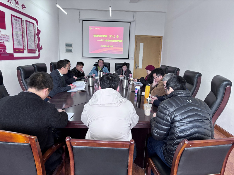 为深入贯彻落实党中央、国务院关于高校毕业生就业工作的决策部署,积极响应教育部《关于做好2025届全国普通高校毕业生就业创业工作的通知》要求,管理学院党委于3月19日在A2-510召开党委扩大会,专题研究2025届毕业生就业工作。会议旨在分析当前就业形势,统筹部署就业工作重点任务,强化责任落实,推动毕业生实现更高质量、更充分就业。参会人员有学院领导,系主任,学工办、学术办、研究生办负责人及毕业生辅导员。