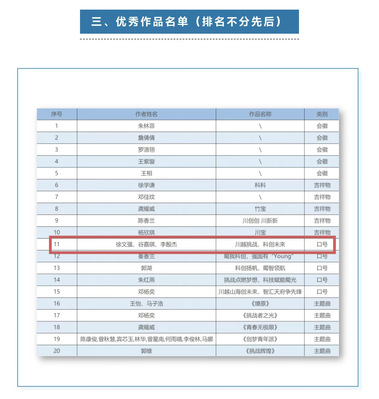 近日,2025年“挑战杯”四川省大学生课外学术科技作品竞赛会徽、口号、吉祥物、主题曲征集活动评审结果揭晓。我院工商管理专业22级徐文强、谷嘉琪、李殷杰共同创作的原创作品《挑战无畏,青春有为》《川越挑战,科创未来》被分别选定为主题口号入围作品、主题口号优秀作品。