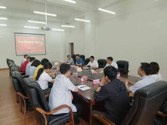 学校党委组织部干部科科长何偲源,管理学院领导班子成员,全体科级干部,教学系(中心)主任,教授代表参加会议。