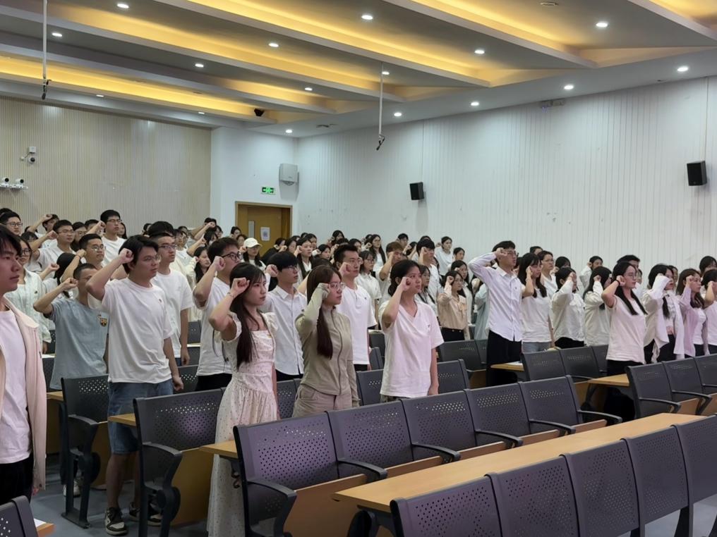 会议最后,在激昂的宣誓声中,2025届全体毕业生党员重温入党誓词,用铿锵有力的誓言再次表明为党的事业奋斗终身的决心。
