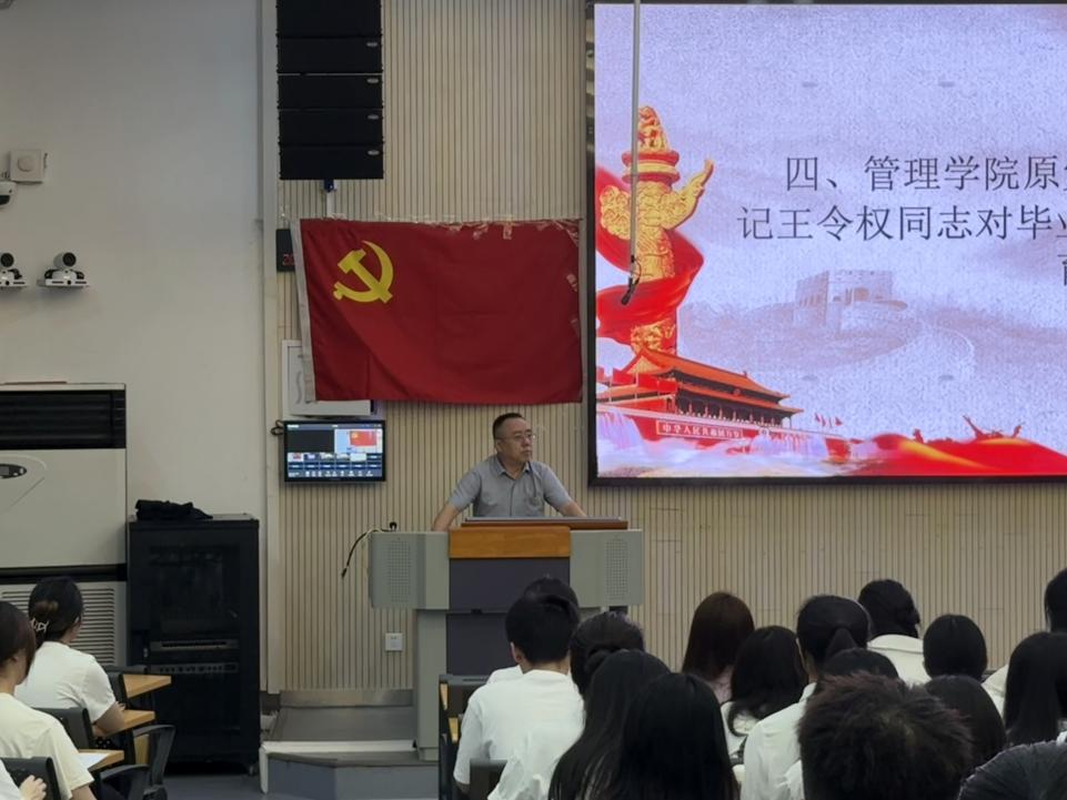 为进一步落实党员教育、管理和服务长效机制,落实立德树人根本任务,2025527日下午,管理学院在宜宾校区A4-109教室对2025届毕业生党员进行离校前教育。原管理学院党委副书记、现管理学院关工委委员王令权同志出席大会,全体管理学院2025届毕业生党员参加。大会由组织员刘峰主持。
