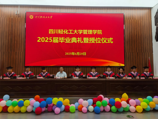 盛夏蝉鸣起,骊歌奏华章。6 月 20 日晚 7 点,管理学院 2025 届授位仪式在宜宾校区综合楼 101 隆重举行。管理学院党委副书记、院长陈希勇,党委副书记(临时负责人)韦崇岗,党委副书记、纪委书记李科,副院长熊山,副院长余元春等学院领导,教研室主任、教师代表以及 2025 届毕业生齐聚一堂,共同见证这一重要时刻,仪式由韦崇岗主持。