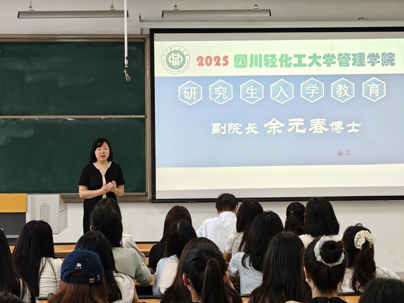 首先,余元春副院长给2025级研究生新生进行入学教育,她强调研究生阶段不仅要重视学术训练,更要注重科研诚信与学术规范的培养。