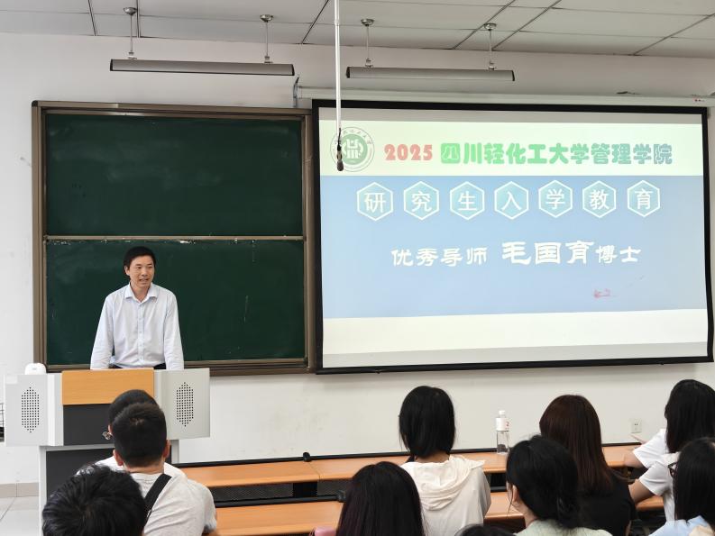 9月13日,四川轻化工大学管理学院在李白河校区举行2025级研究生开学典礼暨专业教育大会。学院领导、教师代表、校友及全体新生参会。党委副书记韦崇岗主持典礼,院长陈希勇教授致辞勉励新生。教师代表刘楠锋博士、校友缪友波、在校生邓博玲及新生杨可心分别发言,寄语新生成长。