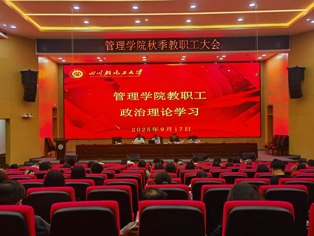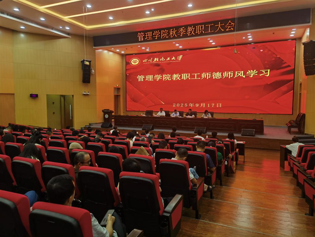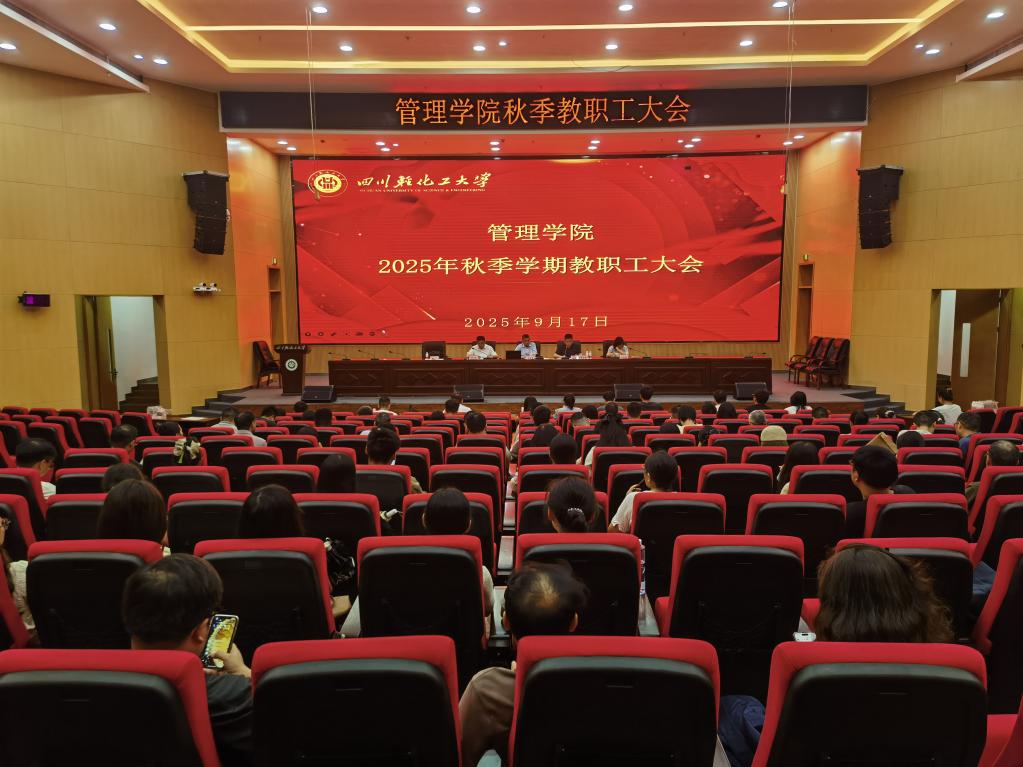 9月17日下午,管理学院在宜宾校区A3-108报告厅召开秋季学期教职工大会。会议由学院党委副书记(党委负责人)韦崇岗主持,全院教职工参加。