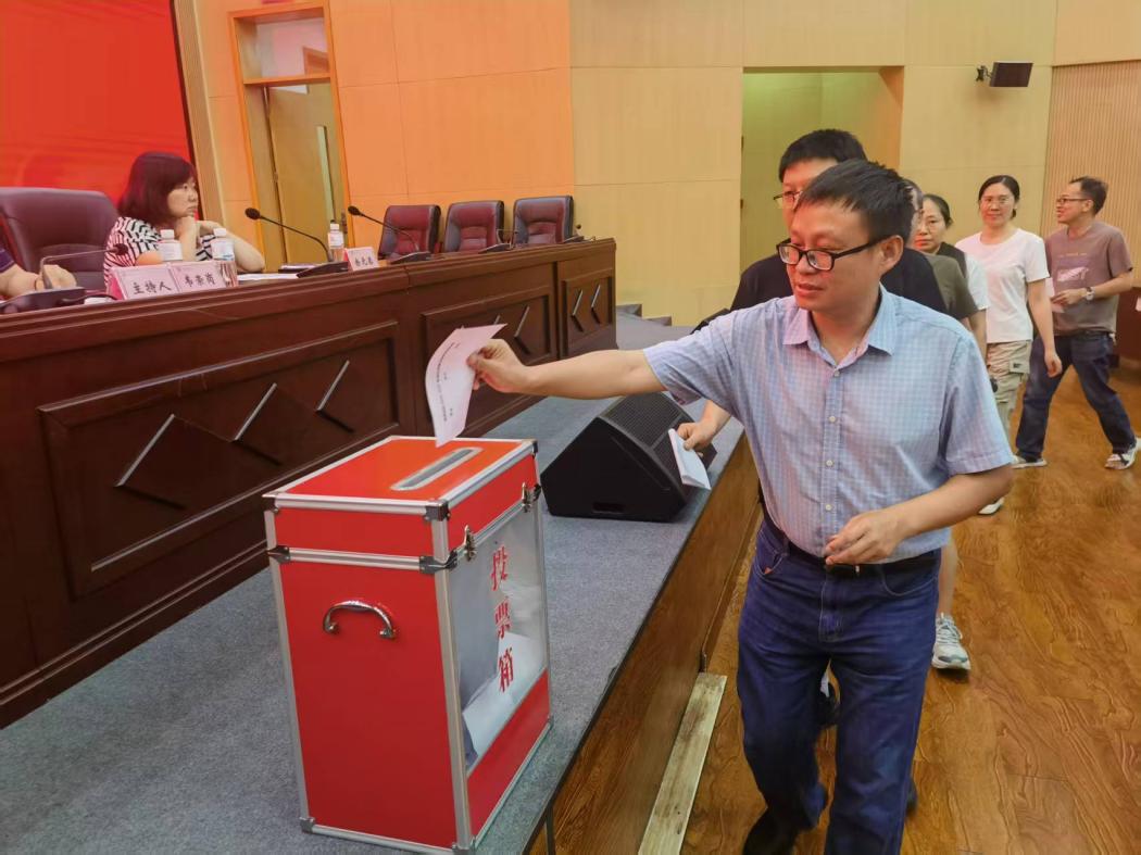 随后,院长陈希勇详细解读了《管理学院2025-2027岗位设置与聘用实施方案》,并就相关内容征求全体教职工意见。会议现场组织了投票表决,由张勇、孔祥冬担任监票人,张兰、陈流雷担任计票人,确保程序公开、公正、透明。方案最终获得高票通过。