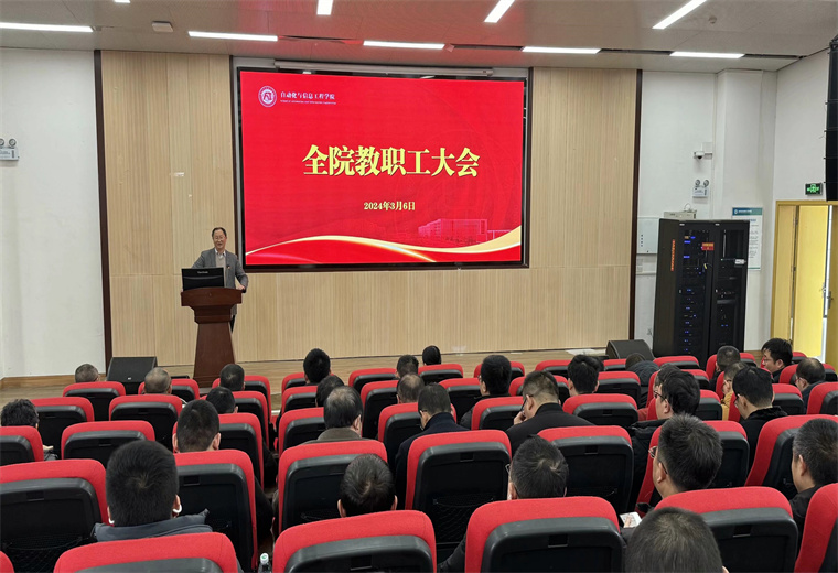 最后,熊兴中院长进行总结讲话。他通报了学院目前人才培养、引进、科研等发展情况,对学院2024年重点工作进行了详细部署。熊院长指出,2024年是学院发展的关键之年,要继续咬定一流学科及博士点建设、一流专业建设目标不放松,在人才培养、补缺项、强业绩等方面科学谋划、统筹安排、全力出击,提高教育教学质量,加强科研创新能力,推进产学研深度融合,为学院发展做出更大贡献。同时,也要加强平台建设、社会服务、学生管理等各项工作,提升师生幸福感,营造和谐、稳定、安全的校园环境。