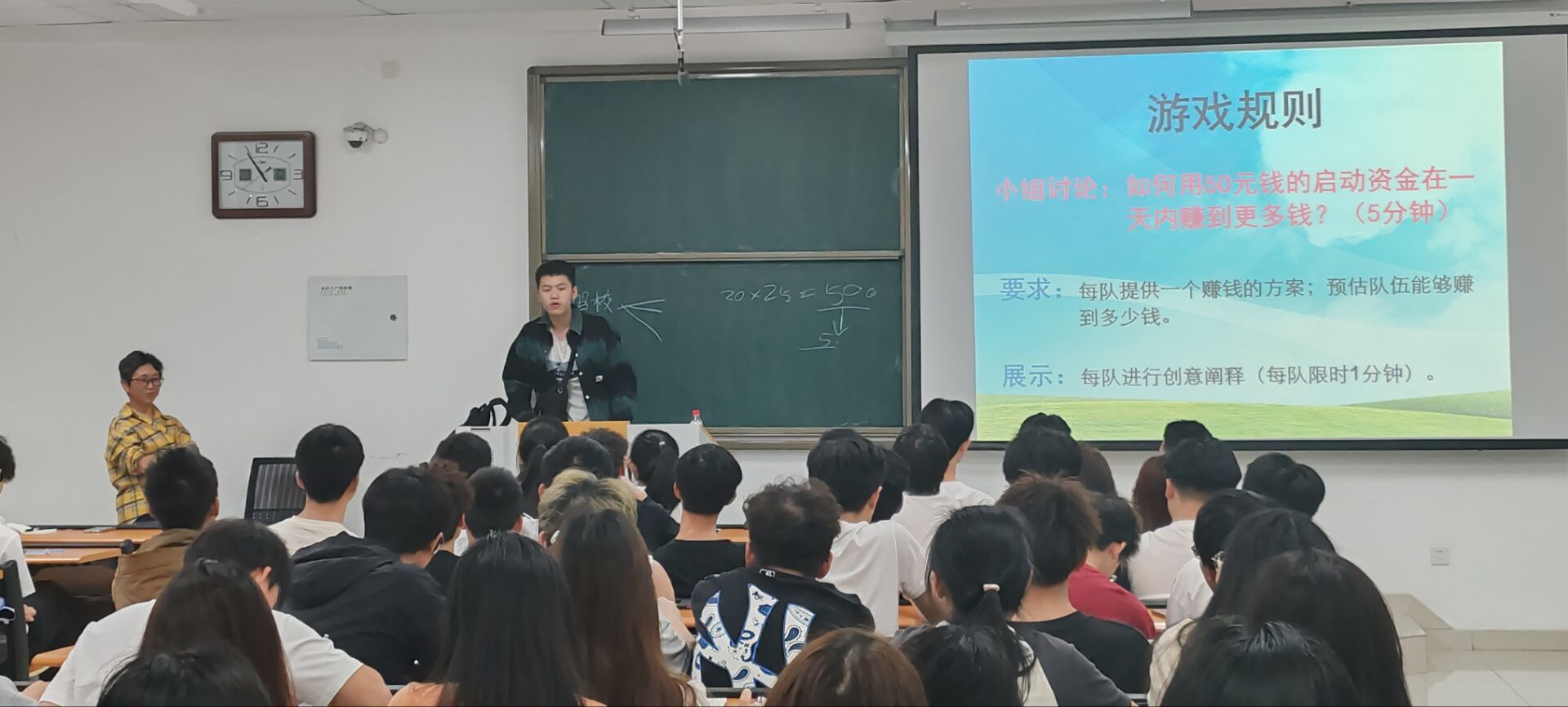 会议伊始,黄老师引了几个专业例子分析了其往年就业机会,创业情况,指出了其所遇问题,也探讨了大多数同学对就业情况的看法。随后分析了大学生就业现象和目前国内创业情况,举了许多成功创业例子,告诉我们创业要有规划,要有调研,从小型创业开始,脚踏实地,过程中同学们仔细聆听,认真反思。最后黄老师让大家通过创业游戏发散思维,5个小组上台讲述了他们的想法,为同学们的创业做了向导,使同学们思维更加发散。黄老师接着具体讲解了创业思路和撰写创业计划书的详细步骤,同学们受益颇丰,也有了许多灵感。