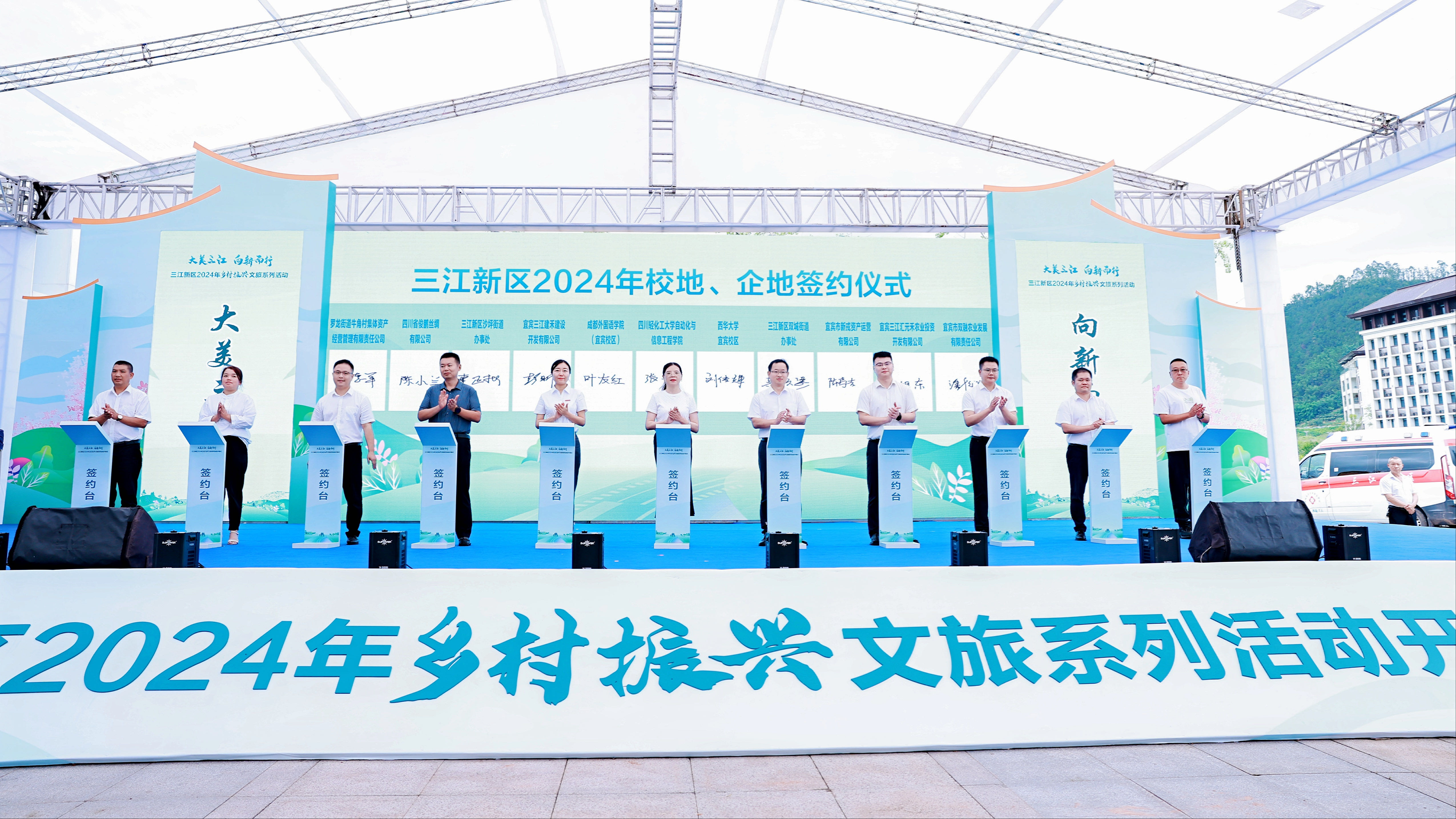 7月10日,“大美三江向新而行”三江新区2024年乡村振兴文旅系列活动开幕式在宜宾三江新区双城街道举行。为进一步贯彻落实习近平总书记关于有力有效推进乡村全面振兴的重要指示精神,推动学院全面助力乡村振兴工作,自动化与信息工程学院受邀参加活动并与三江新区双城街道签订校地合作协议。宜宾市委常委、三江新区、临港经开区党工委书记何永宏、四川轻化工大学自动化与信息工程学院党委书记张艳、在宜大学城部分高校、企业负责人参加开幕式。活动由三江新区党工委委员、副主任朱砂主持。