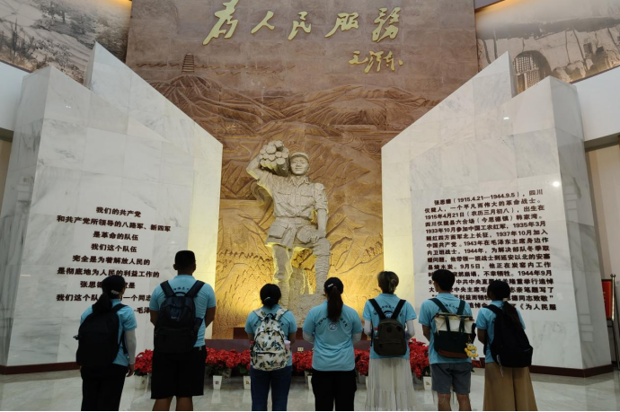 7月16日上午,“德乡筑梦”团队第一站来到了张思德纪念馆。通过馆内实物、史料、图片及组画等,队员们了解到张思德同志平凡而光辉的一生,学习他舍生忘死、舍己为人的的英勇品质,领悟“为人民服务”的真正含义。