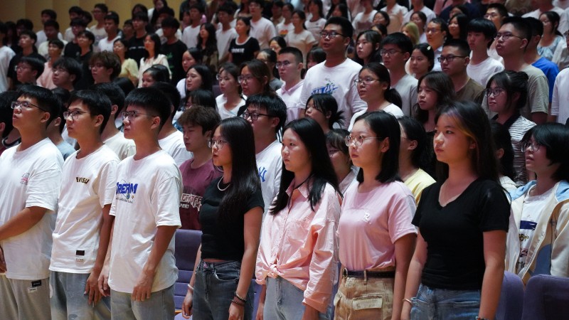 开学典礼在庄严而热烈的国歌声中拉开帷幕。全体师生起立,齐声高唱国歌,表达了对祖国的热爱与尊敬。