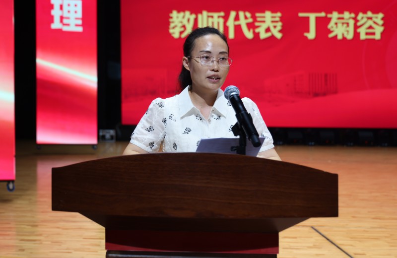 教师代表丁菊容老师发言。她表达了对教育事业的热爱与执着追求,并承诺将竭尽全力为学生的成长贡献自己的力量。丁老师建议同学们积极融入校园生活,积极参与校园活动、竞赛;保持对学习的热情和好奇心,不断地追求知识的广度和深度;培养自主学习能力;构建跨学科思维;适当进行体育锻炼,保持身体健康。她鼓励同学们用坚强的毅力和乐观的心态来面对大学学习和生活中遇到的困难,勇敢追求梦想,迎接挑战,履践致远,在大学四年里书写精彩的青春篇章。