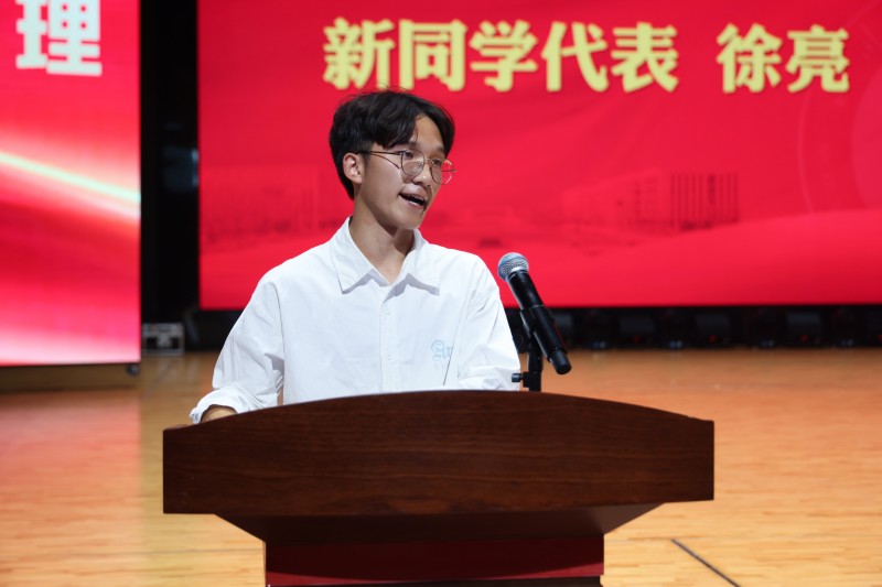 2024级自动化2班徐亮同学作为新生代表发言。他表示,站在新的起点,同学们要修正自己的言行,树立自己的目标,培养良好的学习习惯和方法,注重自身整体素质发展,开启人生新的征程。