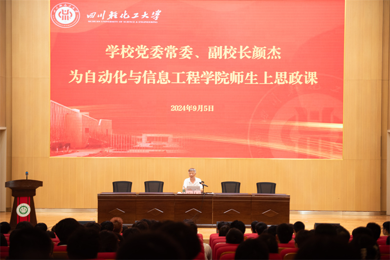 大学是人生新的起点,也是青年学子思想政治教育的关键阶段。为帮助2024级新生系好人生的第一粒扣子,坚定不移听党话、跟党走,9月5日下午,自动化与信息工程学院在四川轻化工大学李白河校区尚艺馆报告厅举行2024级新生开学典礼暨第一堂思政课。四川轻化工大学党委常委、副校长颜杰担任主讲人,为同学们带来了一场主题为“在党的指引下让自己的青春更加靓丽”的思政课。