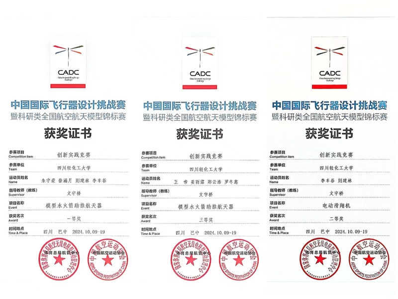 在10月13日至14日举行的比赛中,由自信学院文宇桥老师带领的航模协会成员与来自西北工业大学、中国民航大学、国防科技大学等80所国内知名高校和高中的1750名顶尖选手同场竞技,最终斩获佳绩。他们在模型水火箭助推航天器项目中荣获一等奖1项、三等奖1项,并取得团体第四名的优异成绩;在电动滑翔机项目中获得二等奖1项。
