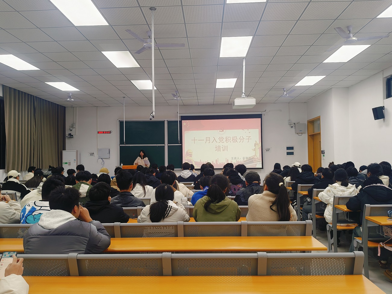 11月,学院党委各党支部开展了十一月入党积极分子培训会。各学生党支部入党积极分子参加会议,会议由各党支部书记主持,深入学习“习近平新时代中国特色社会主义思想所实现的马克思主义中国化时代化新的飞跃”。此次培训旨在通过全面的理论学习,提升入党积极分子的政治理论素养,加深对党的创新理论的理解与领悟。