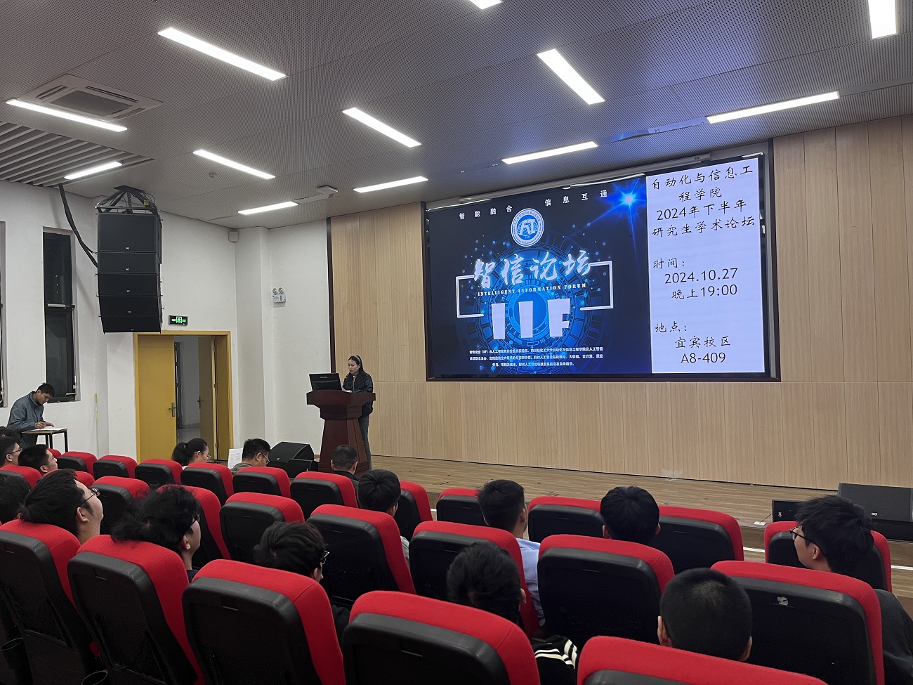 2024年10月27日下午,自动化与信息工程学院在宜宾校区A8-409教室举办了2024年下半年研究生学术论坛——智信论坛(IIF)。院长助理、智能科学系主任丁菊容副教授、智能科学与技术教研室主任李兆飞副教授、自动化系主任王小刚副教授等老师出席论坛。