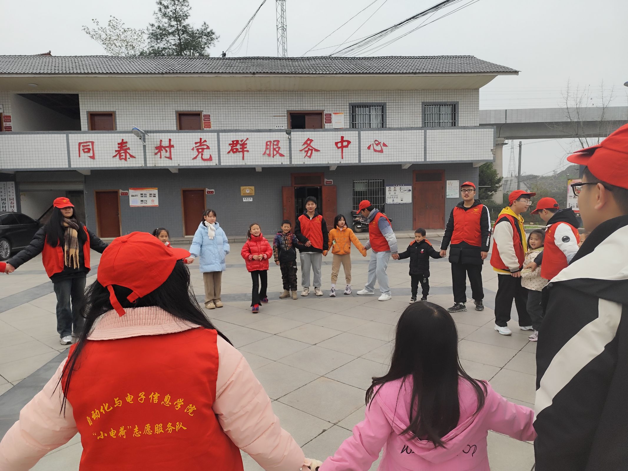2024年12月14日上午,学院“小电荷”青年志愿服务队大一分队联合学院心理团辅,在自贡市大安区三多寨镇同春村举办了“千手千结,筑梦未来”主题活动。此次活动旨在提升乡村儿童的综合素质,设置了三个富有创意和教育意义的游戏项目,吸引了众多小朋友积极参与。