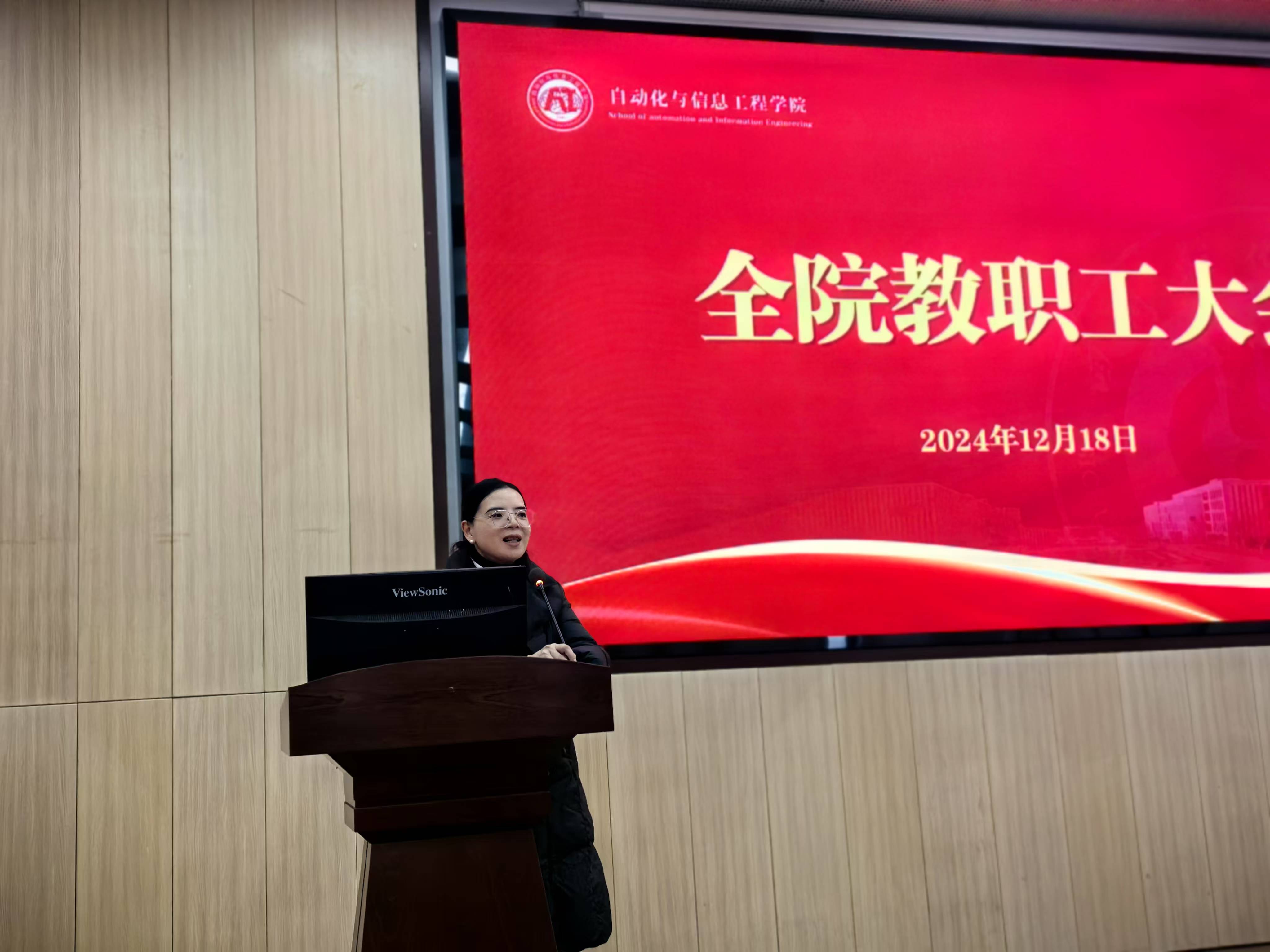 12月18日,自动化与信息工程学院召开了年度教职工大会。会议由学院党委书记张艳主持,学院领导班子全体成员及全体教职工参加。