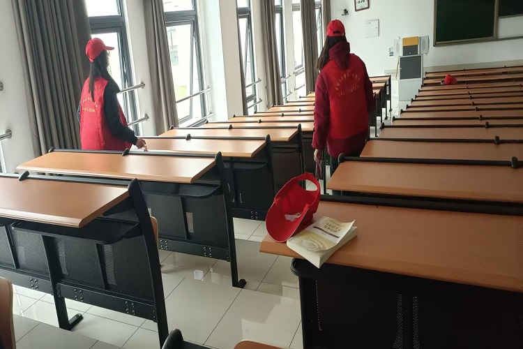 此次活动覆盖了博学楼H1区域、食堂周边以及快递站附近等多个公共场所。志愿者们分工明确,高效协作,捡拾散落的垃圾杂物,擦拭桌椅、黑板等公共设施。经过两个小时的辛勤劳动,改善了校园环境,为师生营造了更加整洁舒适的学习生活氛围。