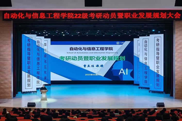 3月5日下午,自动化与信息工程学院在宜宾校区科学会堂隆重召开2022级考研动员暨职业发展规划指导大会。学院党委副书记、院长曹立佳教授、党委副书记、纪委书记雷崇华以及各专业辅导员老师出席会议,2022级全体本科生参加了此次会议。