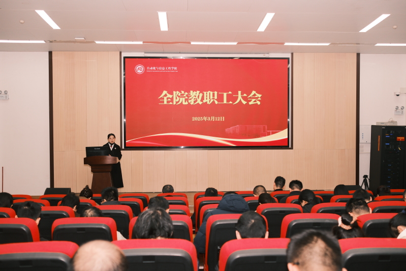 3月12日,自动化与信息工程学院在宜宾校区A8-119会议室召开了本学期第一次全院教职工大会。学院党委书记张艳,党委副书记、院长曹立佳,党委副书记、纪委书记雷崇华以及全体教职工参加了会议,大会由张艳书记主持。此次大会旨在总结过去工作,部署未来发展,进一步增强学院发展活力,凝聚师资力量。