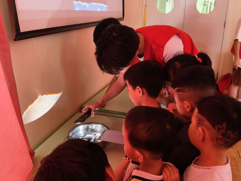 科学实验环节成为全场最受欢迎的亮点。“大象牙膏”实验中,试剂混合后瞬间涌出大量泡沫,现场气氛热烈;“纸飞机”制作与试飞活动,让孩子们直观感受空气动力原理;“蓝海沉浮”实验形象展示了密度变化的科学原理;“光的折射”实验则借助简易道具呈现了光的奇妙特性。一个个互动性强、趣味十足的小实验,让孩子们在动手实践中亲近科学、热爱科学。