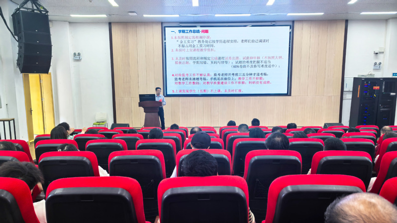 学院副院长周顺勇对本学期教学工作进行了总结,指出了存在的问题,并对未来教学工作提出了明确要求:调停课必须严格按照流程执行,期末考试工作要严格遵循管理条例,监考工作务必细致认真等。