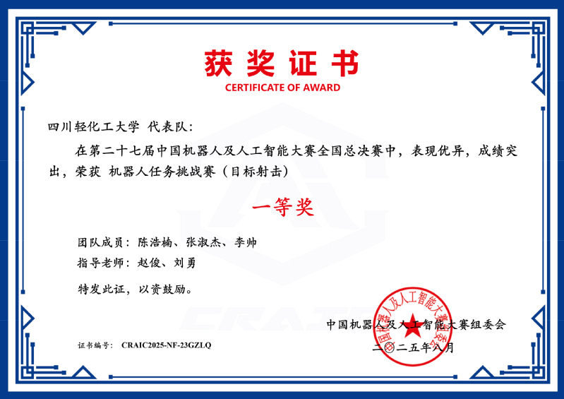 近日,在第二十七届中国机器人及人工智能大赛机器人任务挑战赛全国决赛中,我院学子在“机器人挑战赛—自主巡航、目标射击”专项比赛中表现优异,斩获全国一等奖2项、二等奖2项、三等奖2项,充分展示了学院在人工智能与机器人领域的人才培养成果和实践能力。