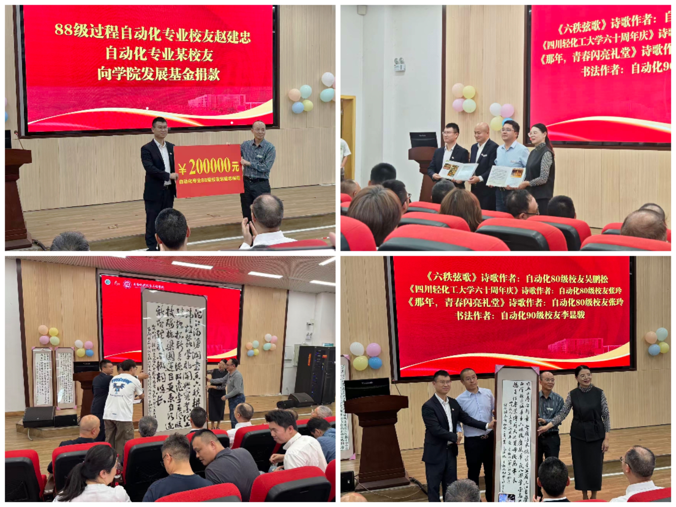 为热烈庆祝学校60周年华诞,10月18日,自动化与信息工程学院隆重举办“凝心聚力·共庆华诞”校友接待与交流活动,来自各届校友齐聚宜宾校区,共叙同窗情谊、共话母校发展。学院党委书记张艳、院长曹立佳及学院领导班子、教师代表、学生志愿者代表参加了相关活动。