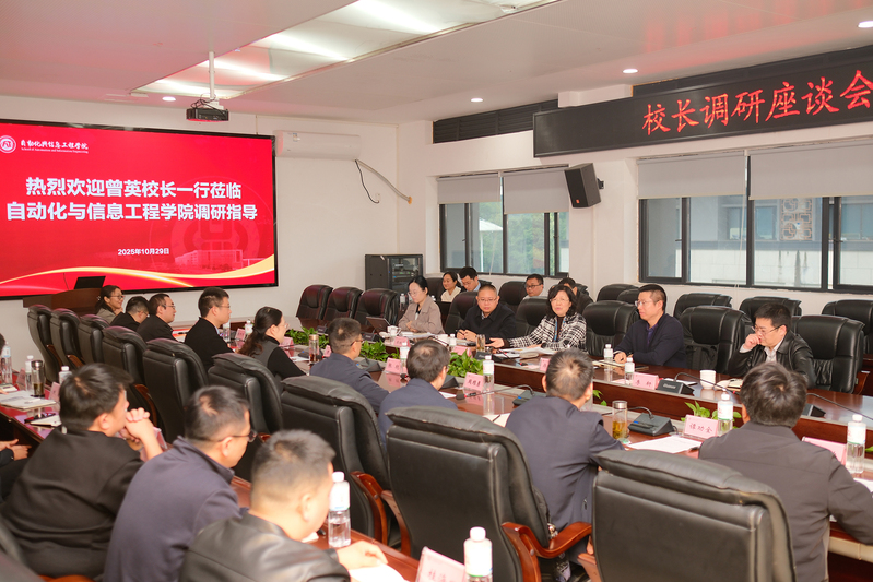 10月29日,曾英校长一行莅临自动化与信息工程学院召开调研座谈会,深入了解学院在人才培养、学科专业建设、教师队伍建设、科研创新及产教融合等方面的工作情况,并对学院未来发展把脉定向。座谈会由学院党委书记张艳主持。
